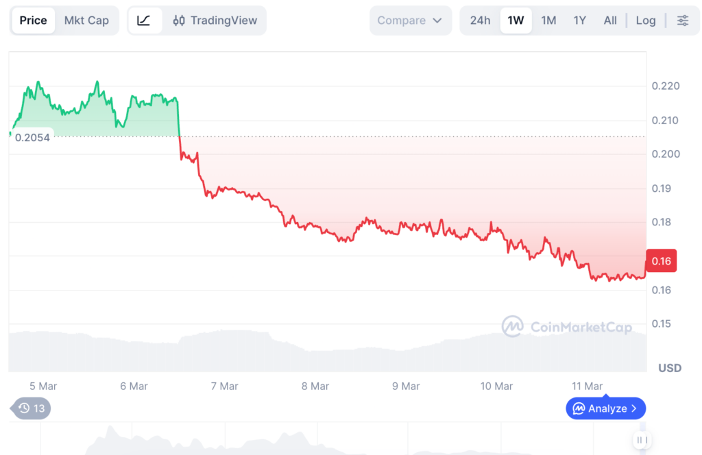 WIF one-week price chart. Source: CoinMarketCap
