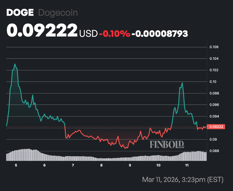 DOGE seven-day price chart. Source: Finbold