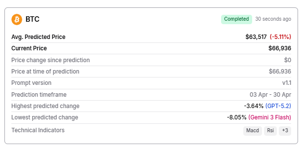 AI models see Bitcoin declining by the end of April
