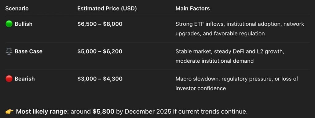 ETH price prediction. Source: ChatGPT-5 and Finbold