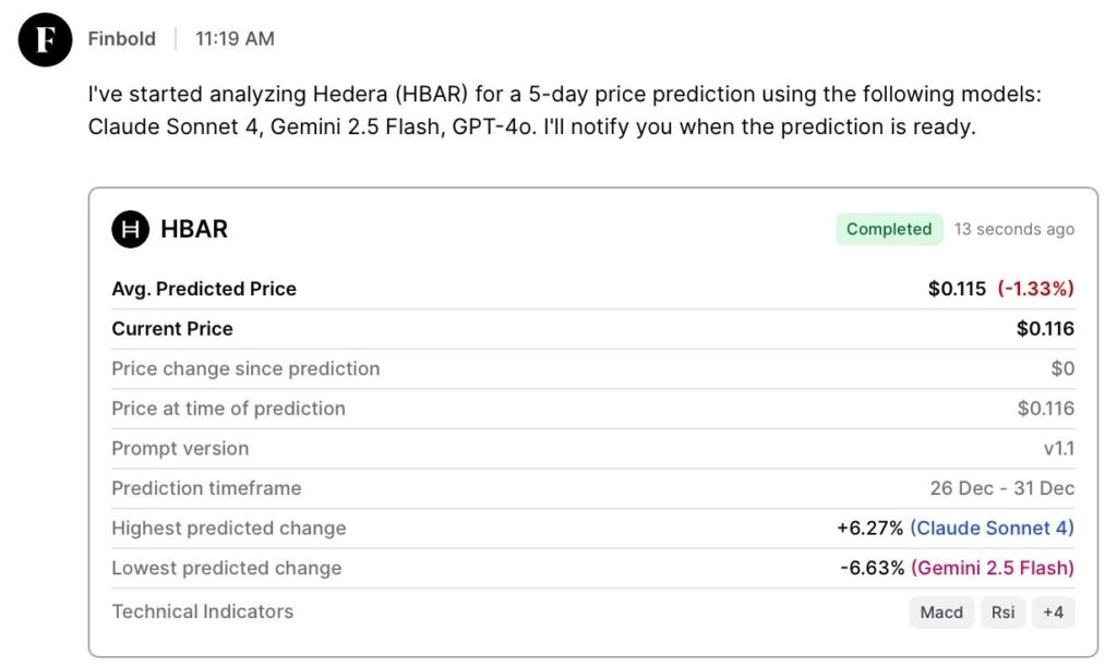 However, the range of outcomes highlights elevated volatility risk. Claude Sonnet 4 delivered the most optimistic scenario, pointing to a potential +6.27% upside, while Gemini 2.5 Flash outlined a downside case of -6.63%. This divergence reflects a market caught between short-term tax-driven selling and anticipatory buying ahead of January’s historically strong performance.