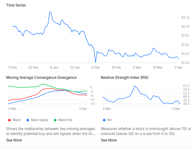DeepSeek and ChatGPT forecast prices of $1.29 and $1.24, respectively, which still translates into a 1.91–5.34% downside.