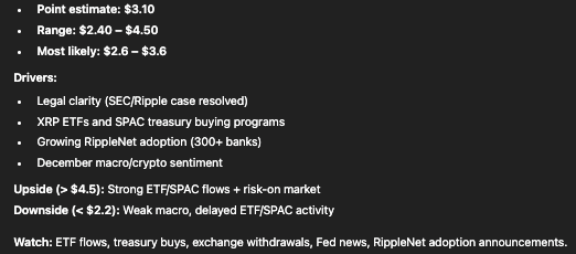 XRP price prediction for December 25. Source: ChatGPT