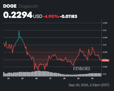 DOGE seven-day price chart. Source: Finbold
