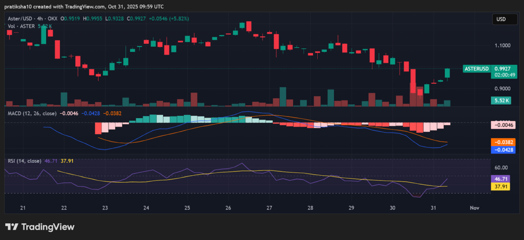 At the time of publication, ASTER traded at $0.9853, recovering the majority of its losses. Its daily trading volume surged around 16% to $674.7 million, according to CoinMarketCap data. The token’s circulating supply is currently over 2.01 billion. ASTER now ranks as the 46th largest cryptocurrency by market capitalization.