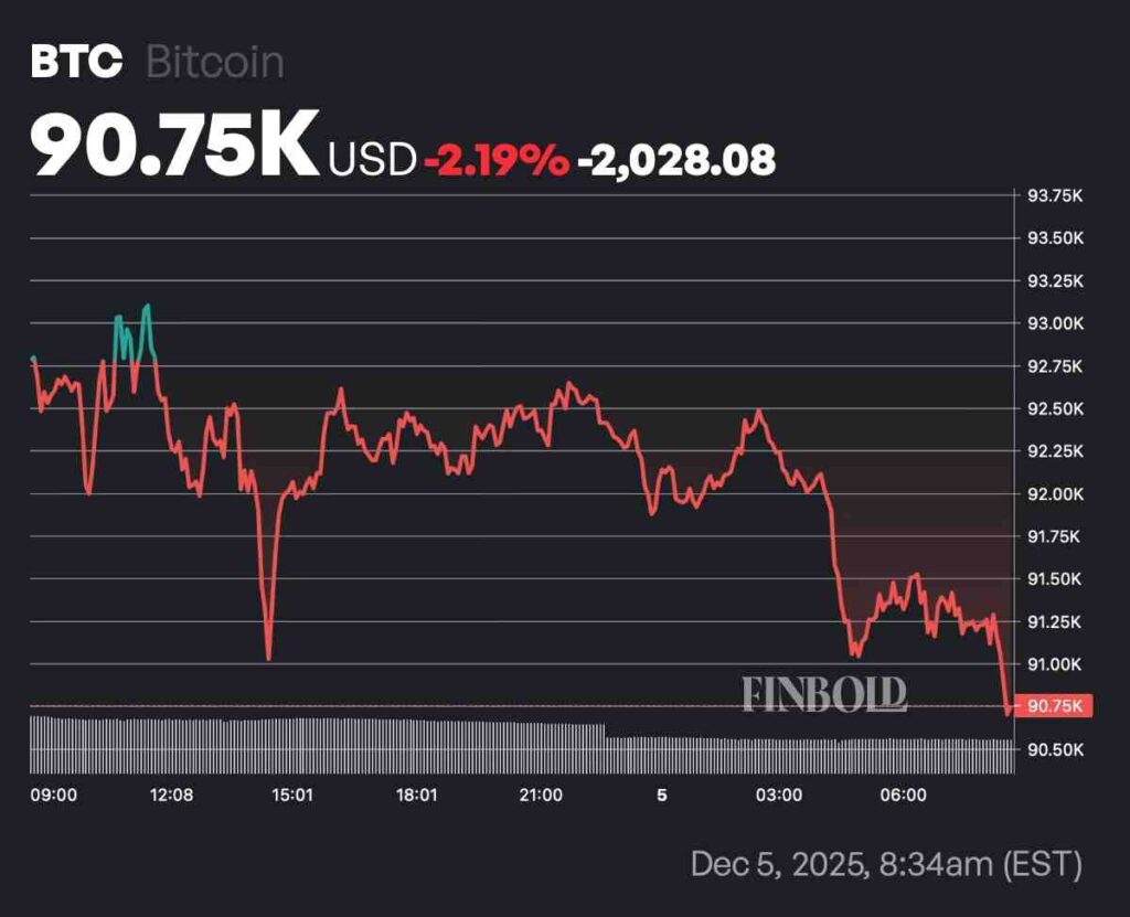 At press time, Bitcoin was trading at $90,750, down 2.19% on the daily chart.