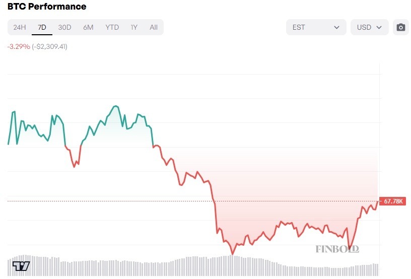 BTC/USD 7-day performance. Source: Finbold