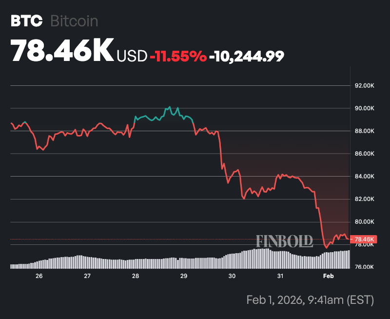 By press time, Bitcoin was valued at $78,461, down more than 6% over the past 24 hours. On a weekly basis, the cryptocurrency has corrected by over 11%.