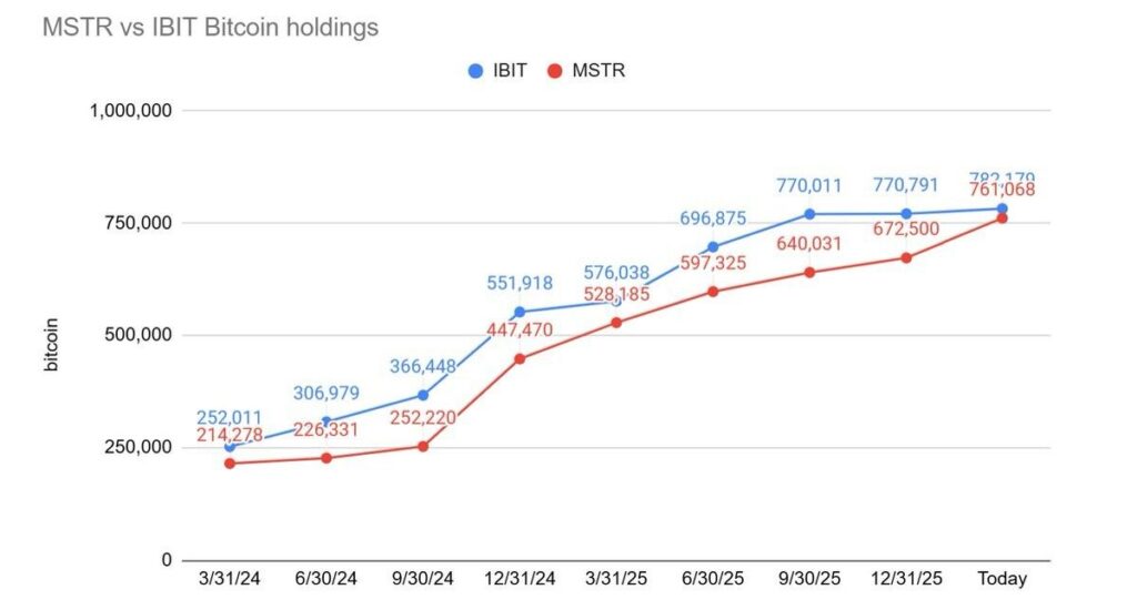 Strategy vs. BlackRock Bitcoin holdings. Source: Bitcoin Magazine