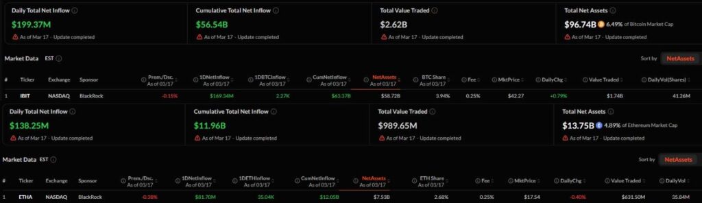 In total, Bitcoin ETFs added around $199.37 million on the same day, while Ethereum ETFs added approximately $138.25 million.