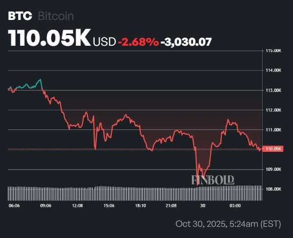As a result, roughly $812 million worth of leveraged crypto trades were liquidated, and the Crypto Fear & Greed Index once again dropped to “Fear” levels, 34 at the time of writing, when Bitcoin was trading at $110,050, down 2.68% on the daily chart.