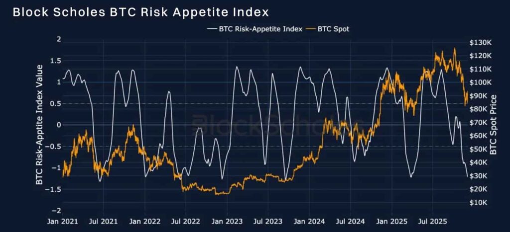 Block Scholes’ Risk Appetite Index. Source: Block Scholes/Bybit