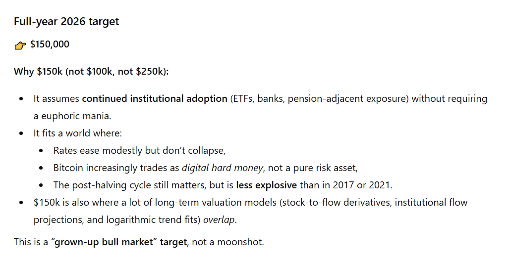 Ultimately, the model opted for a $150,000 price target for the entire year, indicating it estimates the late 2025 all-time high would be exceeded.
