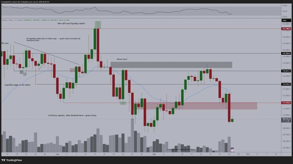 Spot Bitcoin exchange-traded funds (ETFs) also took a blow, recording over $253 million in outflows on Thursday, September 25, bringing the total number for the week to roughly $480 million, a figure expected to rise further if prices slide below key support levels.