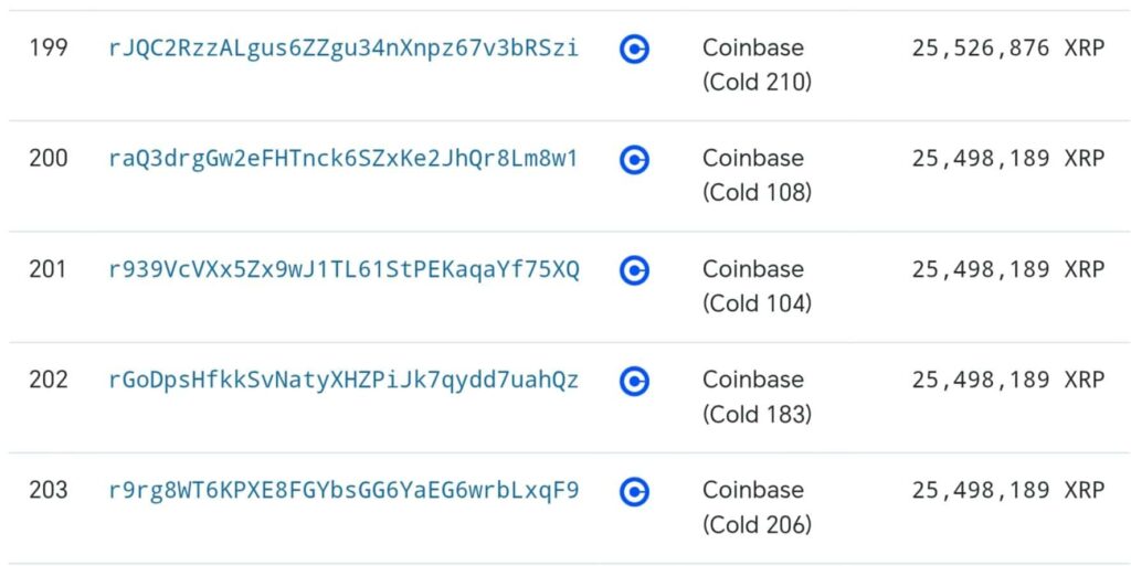 At the start of the summer, the U.S. exchange controlled approximately 970 million XRP across 52 cold wallets. Ten of those wallets each held 26.8 million tokens, while the remaining 42 wallets combined for another 16.8 million. The scale of these holdings made Coinbase one of the most visible custodians of XRP in the market.