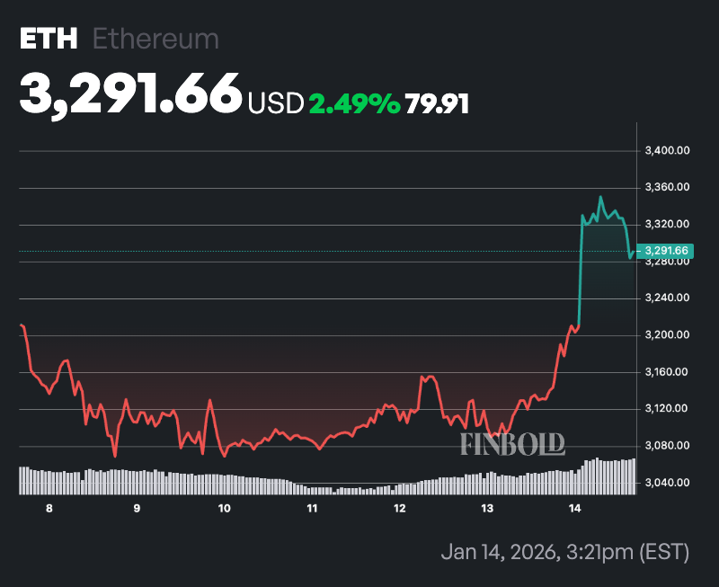 At the current price, Ethereum reflects a neutral market sentiment amid moderate volatility. Notably, Ethereum’s 50-day Simple Moving Average (SMA) at $3,044.37 sits below the current price, signaling short-term bullish momentum as the asset trades above this level.