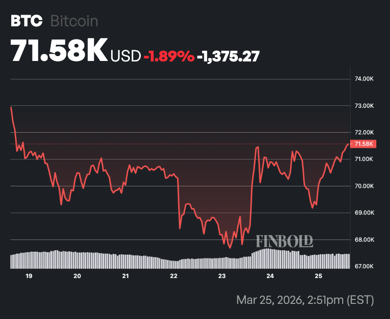 As of press time, BTC was changing hands at $71,890, having gained almost 1% in the past 24 hours. On the weekly timeframe, the asset is down about 1.5%.