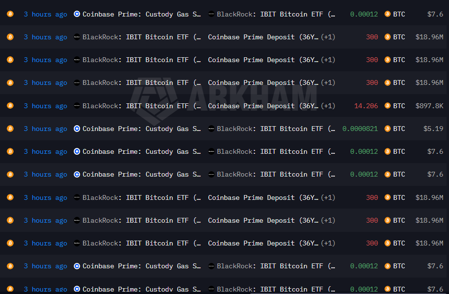 Part of BlackRock’s BTC and ETH transfers to Coinbase Prime. Source: Arkham