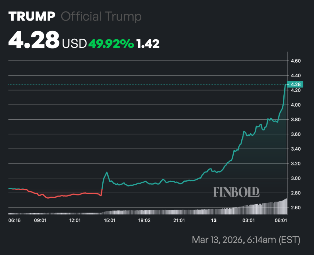 At the time of writing, TRUMP was trading around $4.28, up sharply from roughly $2.85 earlier in the day, according to CoinMarketCap data.