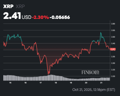Following the latest move, XRP price has not shown any significant movement, as the asset is trading in tandem with broader market sentiment. By press time, XRP was valued at $2.41, having plunged over 2% in the past 24 hours, while on the weekly timeline, the token is down 2.3%.