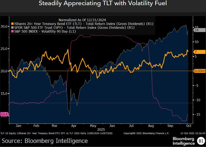To this end, Bloomberg Intelligence data shows TLT steadily appreciating through 2025, while the SPDR S&P 500 ETF Trust (SPY) has struggled to sustain gains.