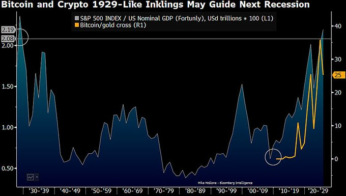 Bloomberg Intelligence strategist Mike McGlone has warned that the resilience of Bitcoin (BTC) could be the key factor preventing a U.S. stock market collapse similar to past deflationary downturns.
