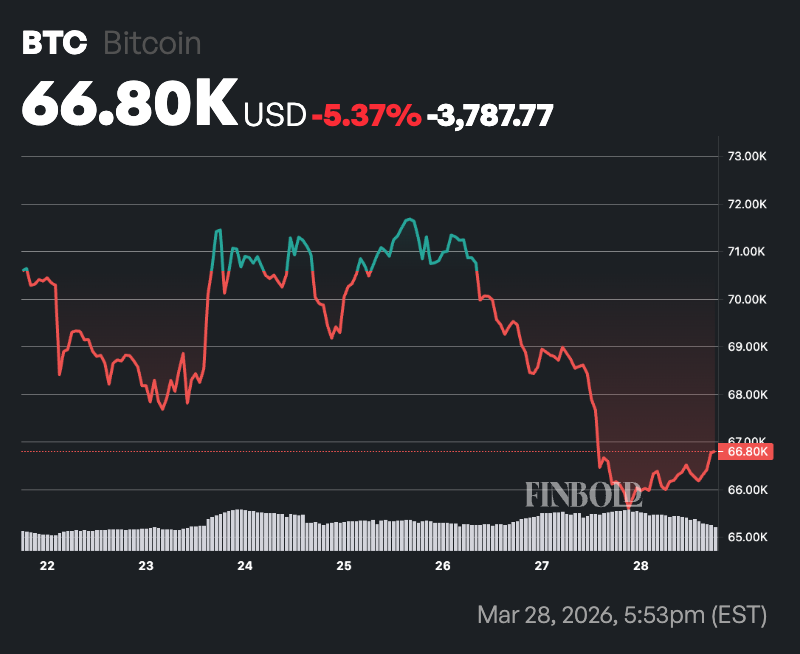 At press time, Bitcoin was trading at $66,805, up a modest 1.2% in the past 24 hours, though it remains down more than 5% over the broader timeframe.