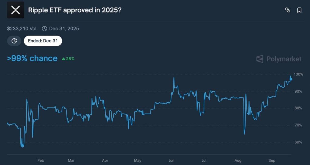 If Geraci’s words come true, sudden new fund approvals could spark a new altcoin rally following increased retail participation. Right now, the market appears most interested in the six XRP applications, as the odds of approval on crypto-focused betting platform Polymarket have skyrocketed to over 99%.