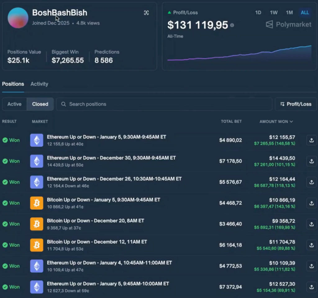 Wallet activity indicates the gains came from automation and execution strategy rather than directional price calls.