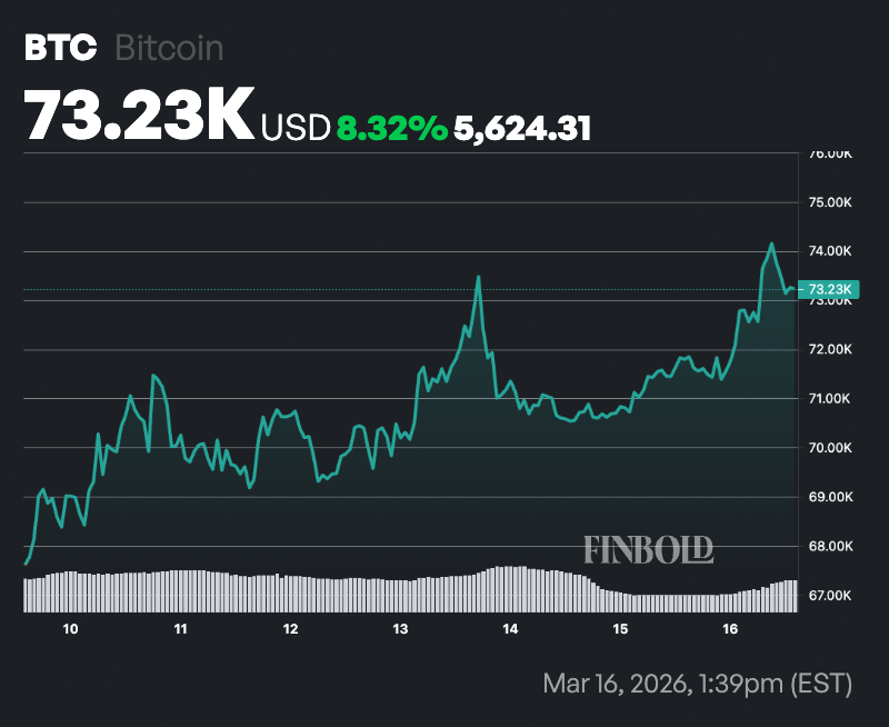 This outlook comes as Bitcoin climbed to a 40-day high above $74,000 amid renewed institutional demand and stabilizing market conditions.