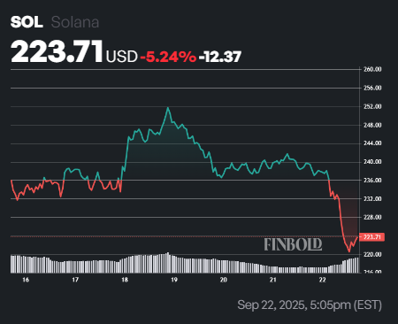 At press time, Solana was trading at $223, down nearly 7% in the past 24 hours and more than 5% over the past week.