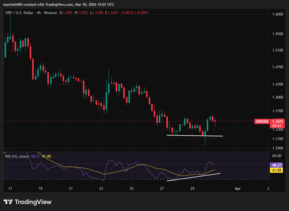 Between March 22 and March 30, the account balance of XRP whales increased from about 11.05 billion tokens, worth around $15.47 billion, to approximately 11.17 billion tokens, valued at $14.86 billion at the time of publication, according to Santiment metrics.