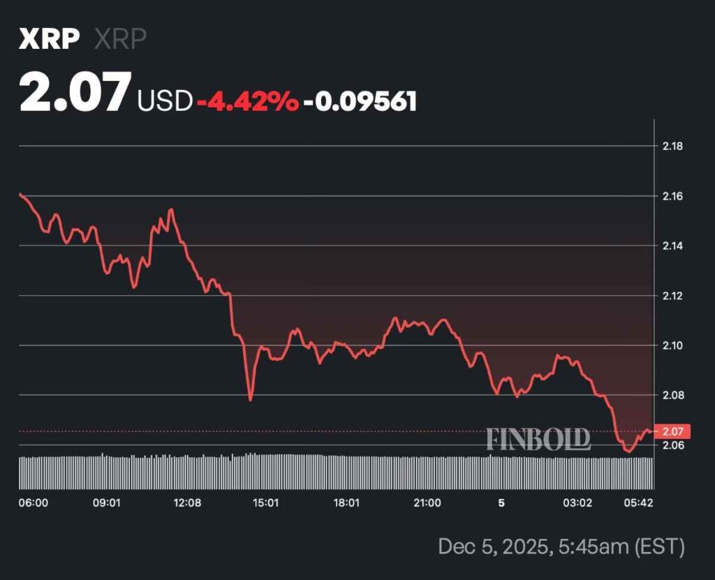 XRP crashed over 4% on Friday, December 5, extending its now two-month-long general decline, which has seen the token’s price drop more than 30% since October 5.