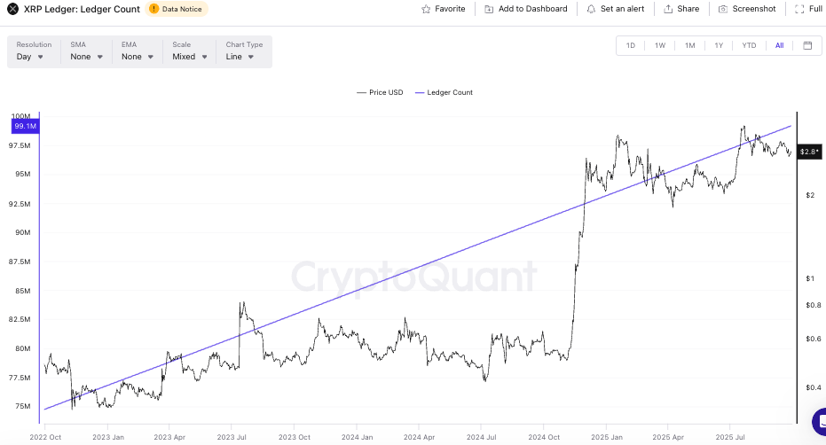 Overall, reaching 100 million ledgers will be a symbolic milestone, highlighting XRP’s resilience and adoption amid rising blockchain competition. Meanwhile, as the ledger count rises, XRP continues to attract significant interest despite trading below $3.