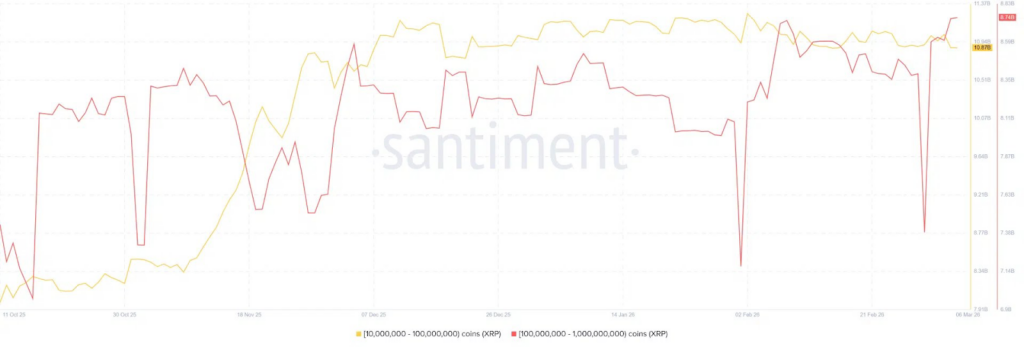 XRP Whale balance since the October 11 crash. Source: Santimient