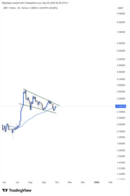 In an X post on September 29, the analyst noted that the cryptocurrency is forming a symmetrical triangle, with both its support and resistance converging.