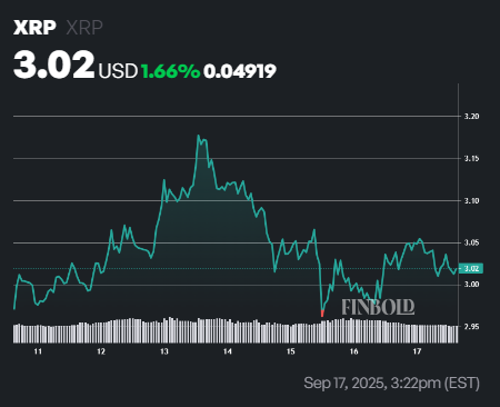 Despite the selling, XRP has managed to hold support above $3, a level now seen as a critical threshold for short-term momentum. As of press time, the token was valued at $$3.02, having dropped by about 0.5% in the last 24 hours.
