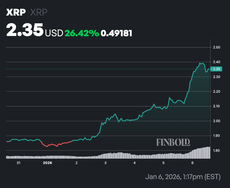 The rally saw XRP break through a resistance zone around the $2 mark that had capped upside for weeks, supported by one of the token’s strongest volume surges since mid-December.