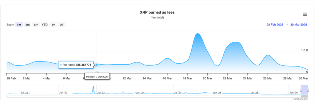 This divergence between price action and network fundamentals is notable considering that one of the clearest indicators is the sharp rise in XRP’s burn rate, which climbed to 1,851 on March 19.