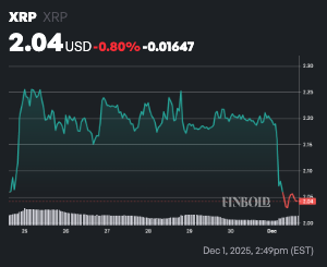 The digital asset has now fallen nearly 7% in the past 24 hours with XRP price trading at $2.04 at the time of publication, erasing much of the momentum it attempted to rebuild last week. On the weekly timeframe, XRP is down nearly 1%.
